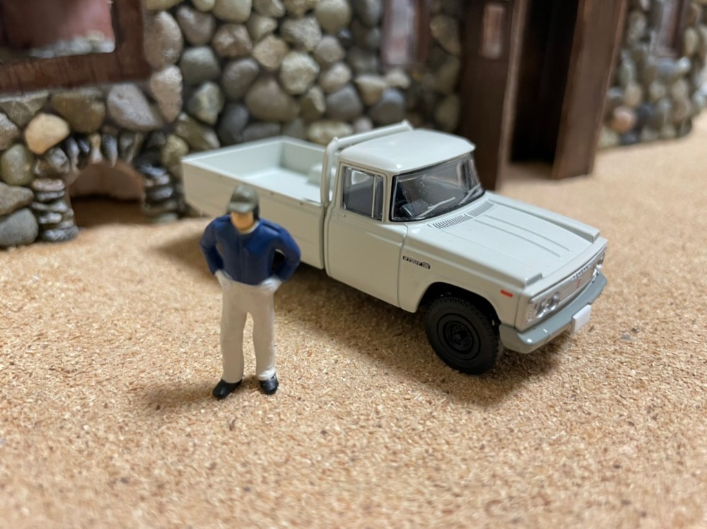 トヨタ「スタウト」は連続ドラマと’83冬に登場します。車に人形付き!北の国からファンの間では「五郎さんにしか見えない」と話題です。