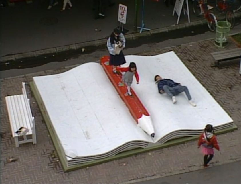 ’89帰郷。螢が鉛筆の上を歩き、勇次がノートの上に寝転がった「ノートと鉛筆のオブジェ」の場所は、そらちさんが探し出しました!なんとYoutubeの映像からです!