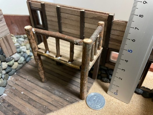 今回は2階部分を作りました。床部分はホームセンターで購入した工作材、柱と柵の部分は拾ってきた木の枝で作りました。