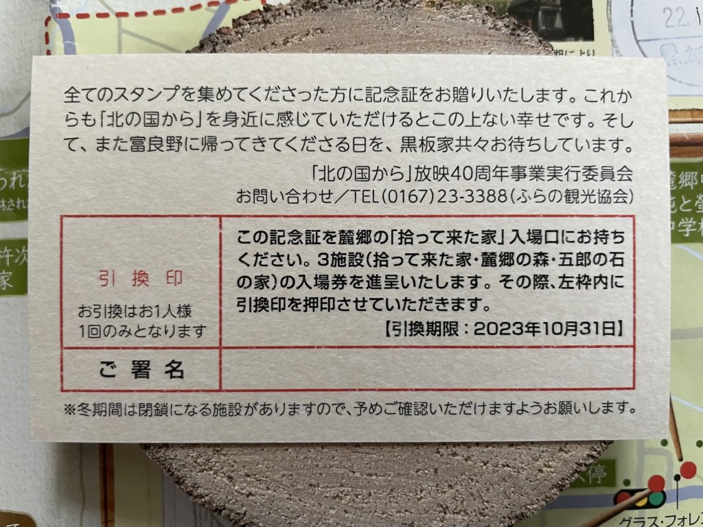 ロケ地巡り記念証はなんと!「拾ってきた家、麓郷の森、五郎の石の家」の入場券に引き換えてくれるそうです🤗