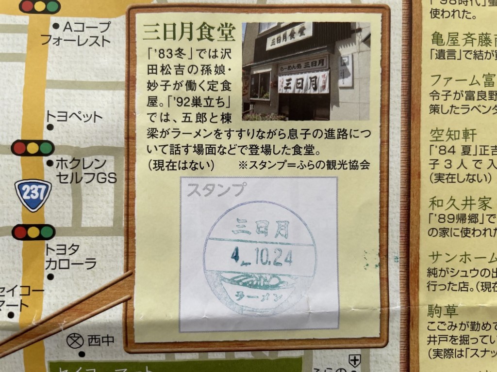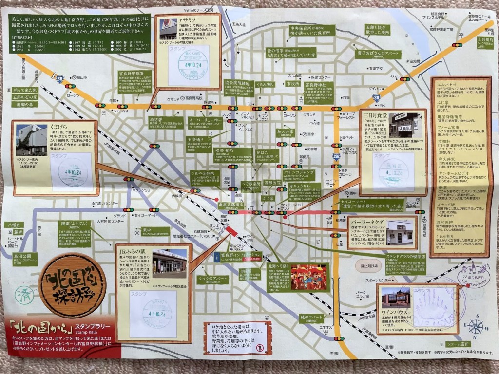 スタンプラリーの用紙です。北の国からロケ地の地図にもなっています。