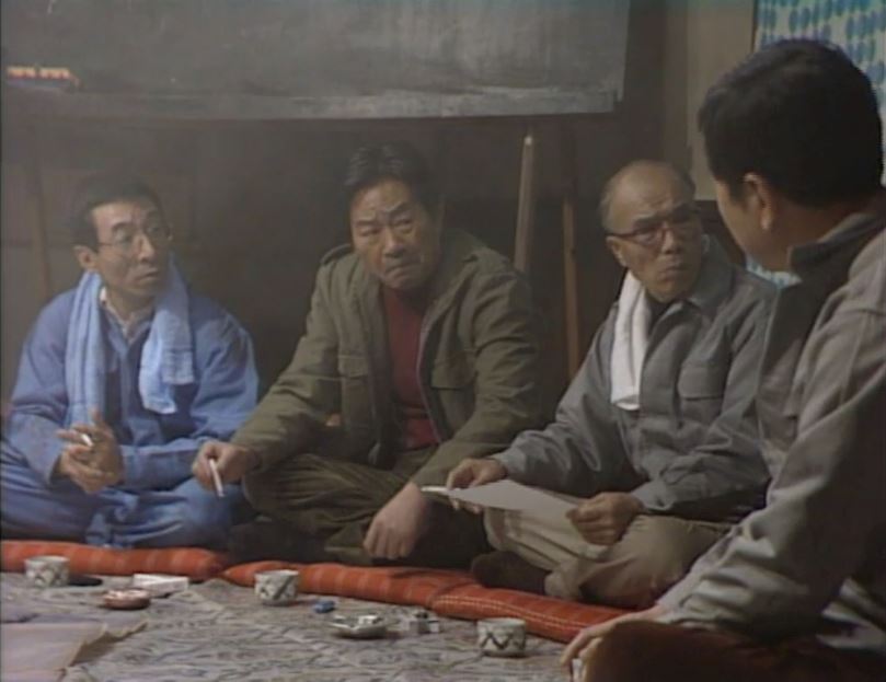 北の国から連続ドラマ第16回、杵次の葬儀の準備をしているシーンです。ここでも台詞は確認できませんでしたが、画面左上の男性が顔の特徴から神田正夫さんと思われます。画像が粗く違っているかもしれませんので、ご意見お待ちしております。