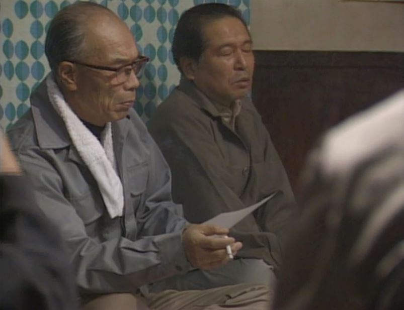 映像をよく見ていると、和夫の正面にいる男性が武田さんであることは分かります。カンちゃんと呼ばれている男性は和夫と同世代か年下と思われます。和夫から見て右手にいる緑色の服を着た男性がカンちゃんと思われます。
