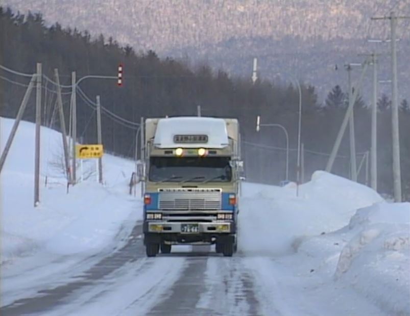 純が乗ったトラックが走った場所 ’87初恋。純が乗った東京行きのトラックが走った場所。トラックに乗った純は泥の付いた一万円札を手に昔のことを思い出している。麓郷街道・道道544入口付近・富良野市南扇山。
