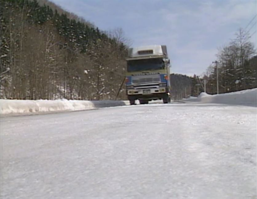 純が乗ったトラックが走った場所② ’87初恋。純が乗った東京行きのトラックが走った場所②。トラックに乗った純は泥の付いた一万円札を手に昔のことを思い出している。麓郷街道。