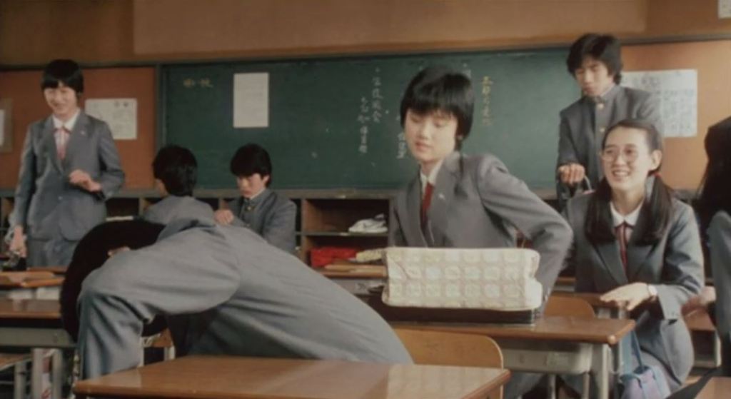 教室での座席は原田知世さんの後ろですが、役名が生徒Aということもあり台詞はほとんどありませんでした。