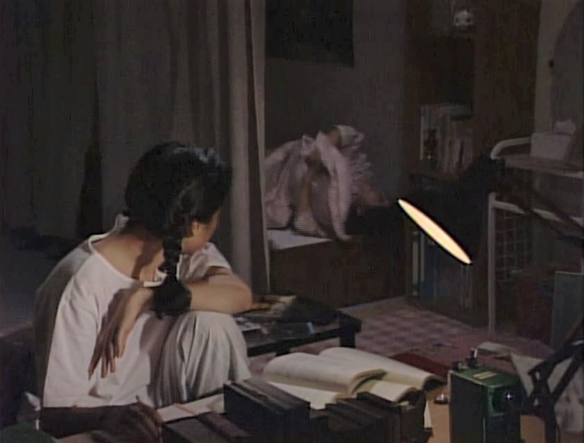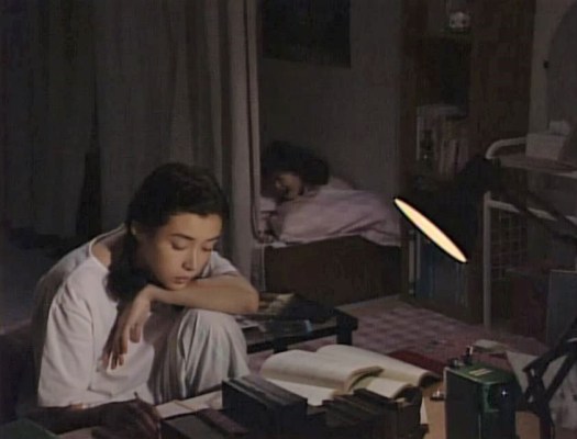 看護寮・螢の部屋(深夜) 勉強している螢。 ベッドで眠ている同室の昌子。 語「時々富良野から電話があるから父さんの声だけはちょくちょく聞いていた。でも。富良野には帰ってなかった」 昌子「まだやってンの?」 螢「ーもうちょっとだけ」 昌子「ガンバルなァ」 螢「眩しい?」 昌子「だいじょうぶ」 昌子寝返りを打ち、また眠りに入る。 ※「北の国から'92巣立ち 倉本聰 理論社」より