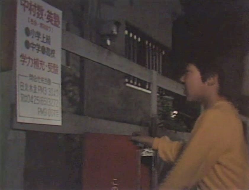 英語塾 連続ドラマ第13回。恵子ちゃんやタカシ君・ユタカ君が通っていた英語塾。ドラマ映像から「中村数・英塾」の看板が確認できる。