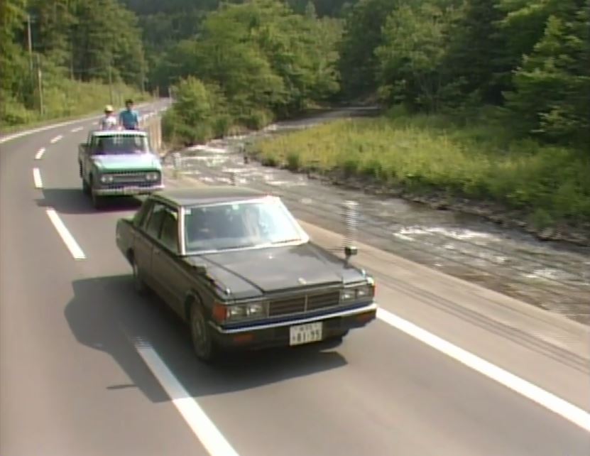 日産モーター販売 ’83冬。草太が妙子を車に乗せて走る道の途中、日産モーター販売の看板「ローレル・サニー・マーチ」が見える。現在は東京靴流通センター 富良野店。