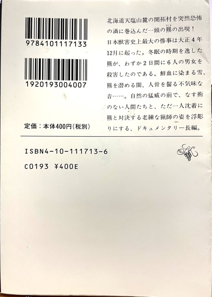 日本史上最悪の熊害と言われる三毛別羆事件を題材にした小説です。以前から気にはなっていたのですが、遅ればせながら読み終わりました。