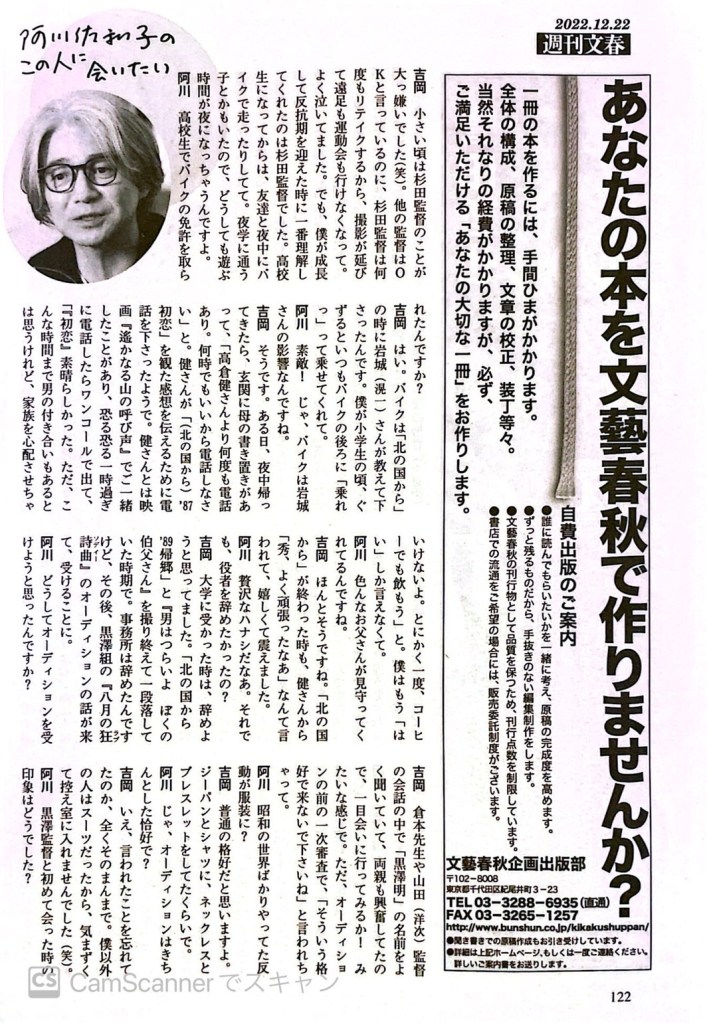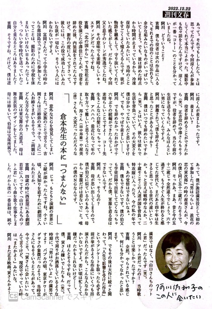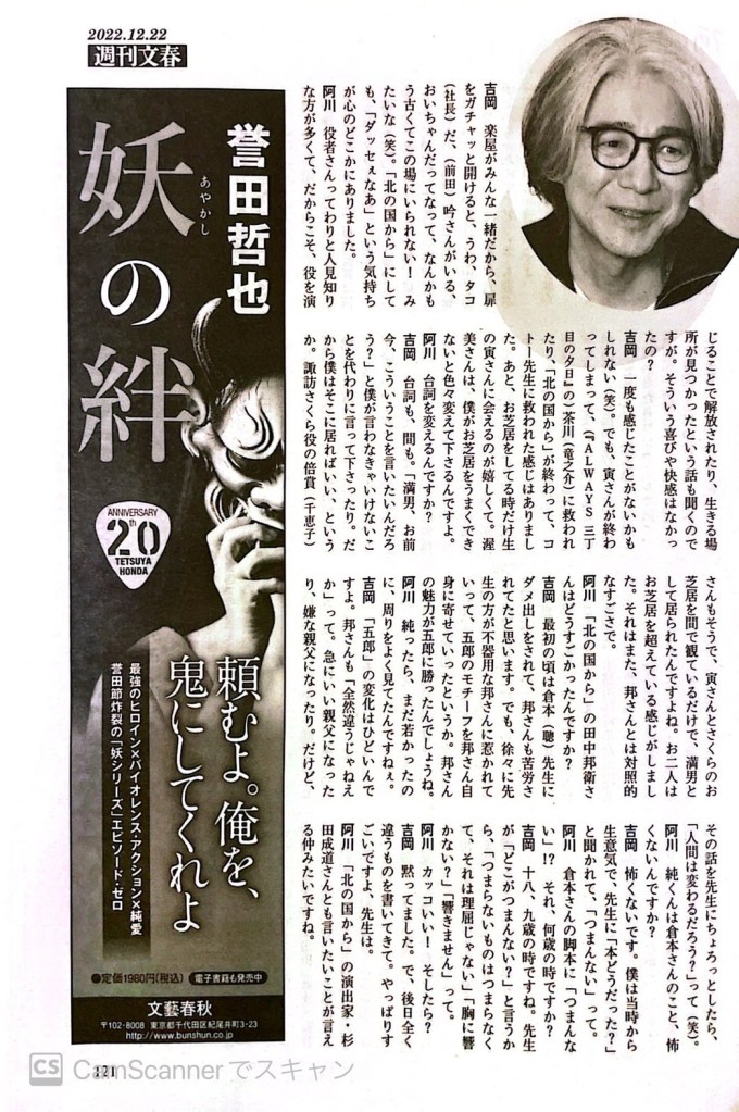 もっと知りたい気持ちが強くなりネットを探していると、週刊文春にインタビュー記事が掲載されていましたので早速手に入れました。ファミリーヒストリーと重なるエピソードも載っていました。全6ページを共有します。