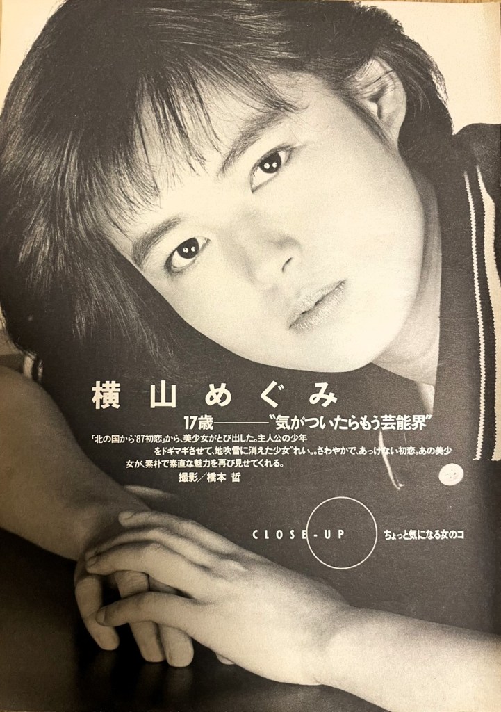 週刊プレイボーイ1987年5月5日No.20に掲載された横山めぐみさんの記事を紹介します。北の国から’87初恋のロケの後に取材を受けているようです。