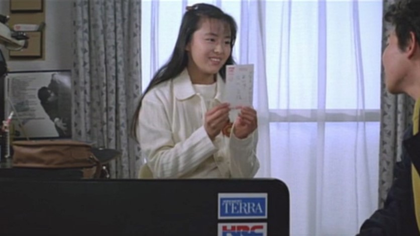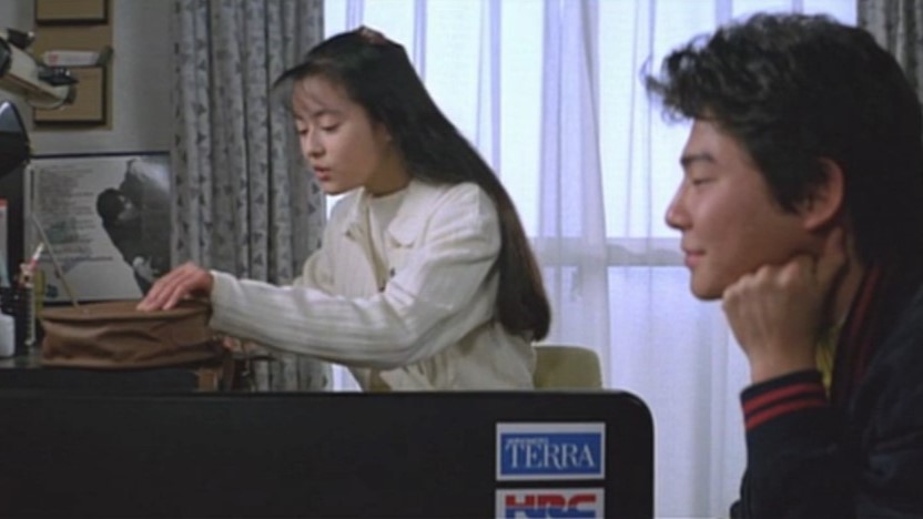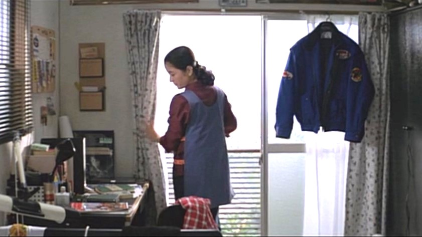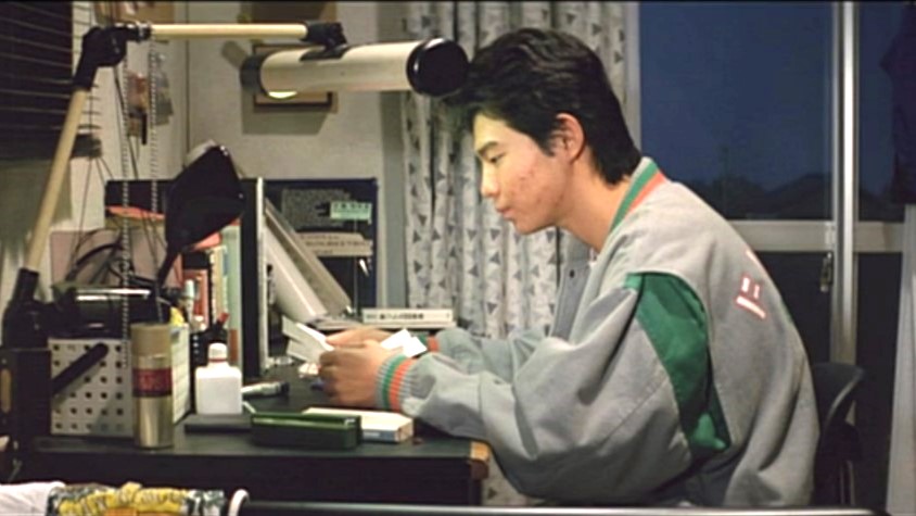 後藤久美子さん演じる泉ちゃんが満男の部屋に入ってくるシーンです。このシーンでも尾崎豊さんのポスターが確認できますが、パジャマ姿の泉ちゃんも気になります(笑)