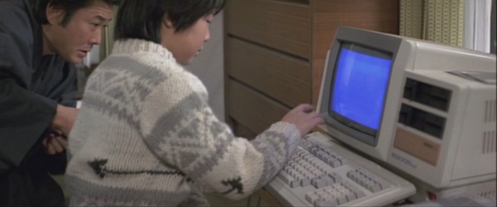 たこ社長(太宰久雄)に買ってもらったパソコンを使う満男(吉岡秀隆)と博(前田吟)