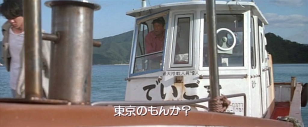 でいご丸の船長が「東京のもんか?」と話しかけますが、満男は黙って下船します。