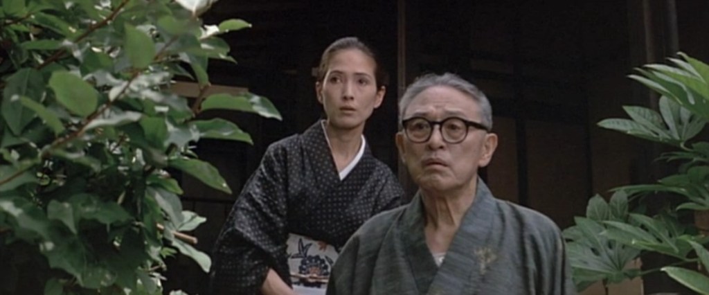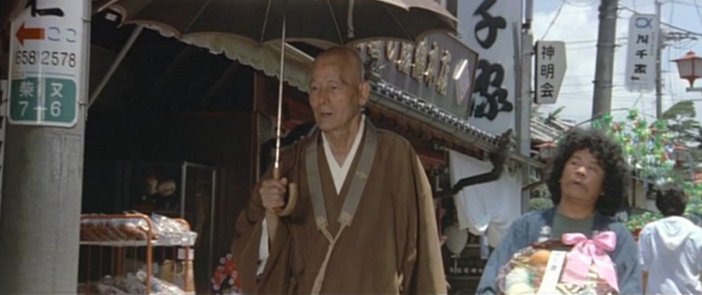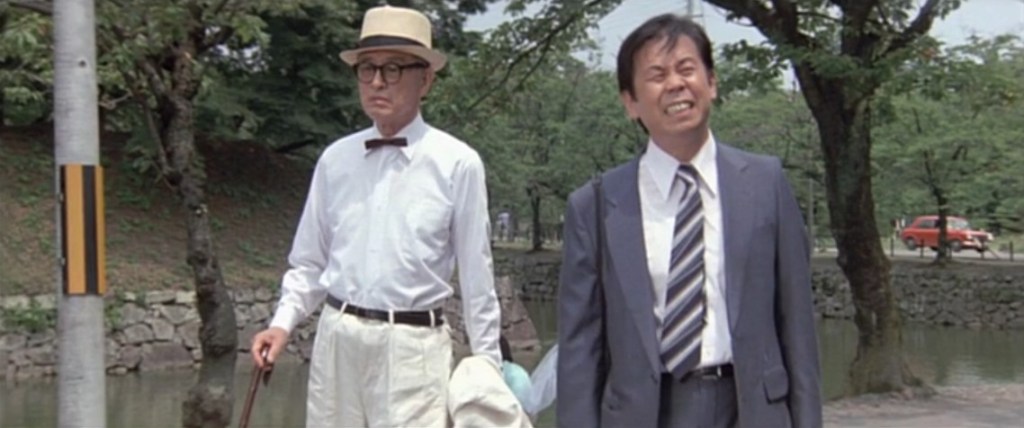 恋の病にかかった寅さんの見舞いに向かう御前様(笠智衆)と源ちゃん(佐藤蛾次郎)