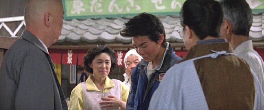 佐賀県から無事に柴又に帰ってきた満男。おいちゃんやおばちゃん、近所の人たちから温かい言葉をかけてもらいます。
