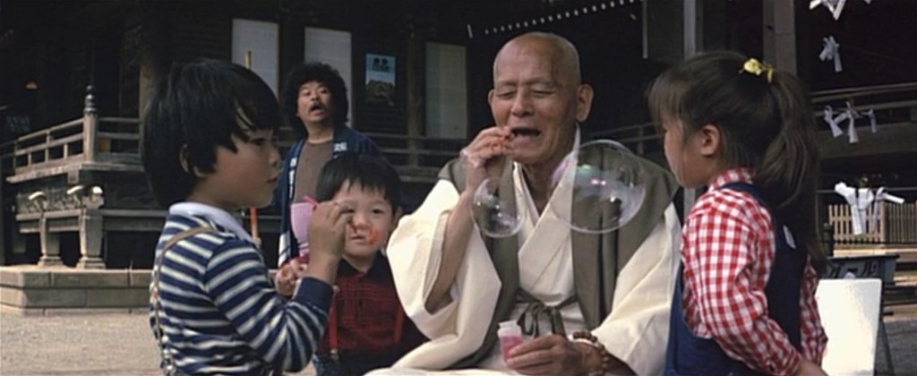 オープニング後は、帝釈天の御前様(笠智衆)登場です。子どもたちと楽しそうに遊んでいます。