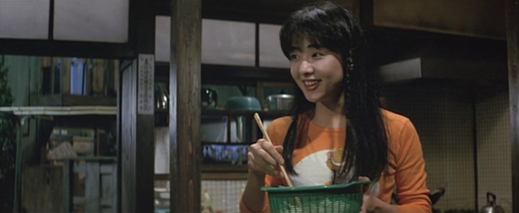 おいちゃんが入院してしまったので、とらやに手伝いに来ているあけみ(美保純)です。