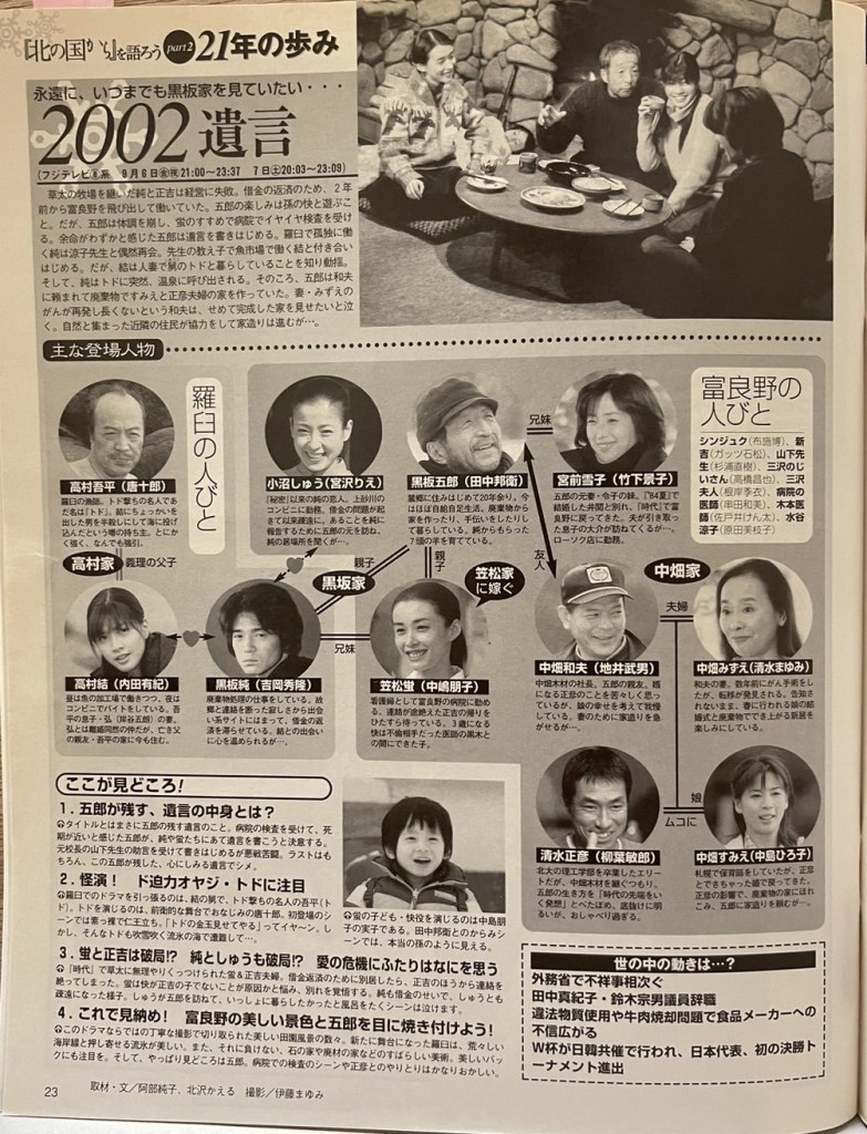 2002年9月6日は北の国から2002遺言(前編)・9月7日は北の国から2002遺言(後編)の放送日です。あれから22年も経ちました。