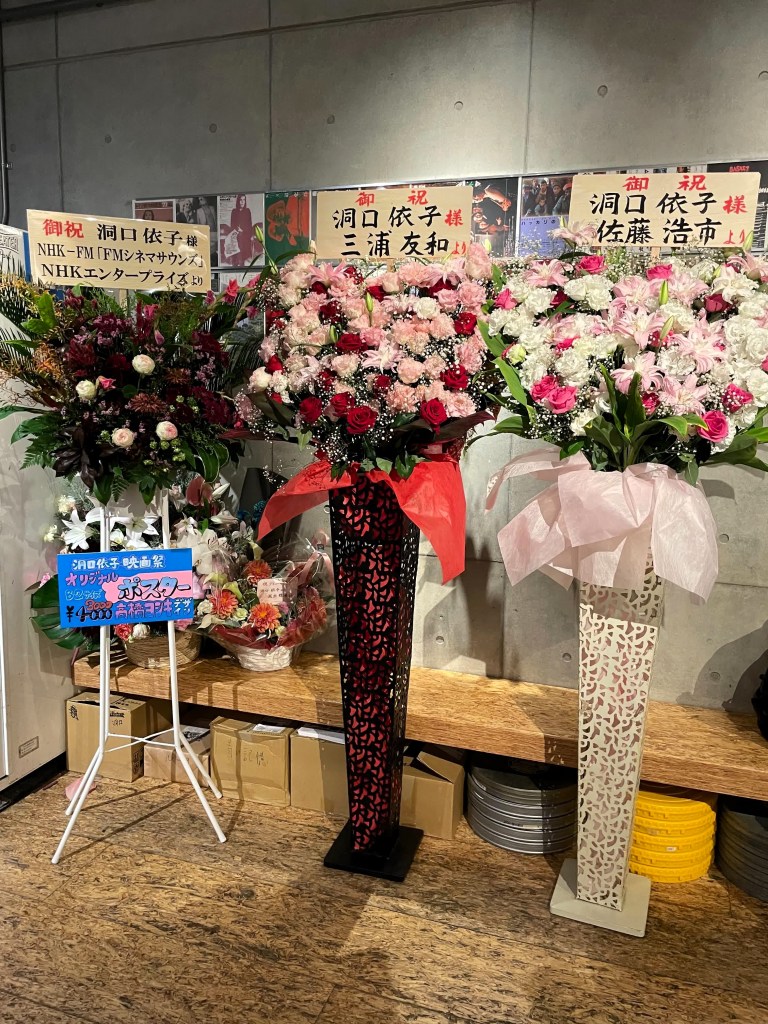 映画館入り口に貼ってあったポスターとお祝いの花です。