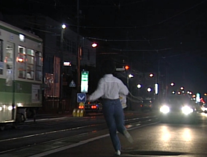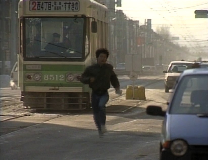 札幌市電_西線14条停留場 ’92巣立ち。ビデオを借りたれいちゃんは停留場前の道路を走って横断した。