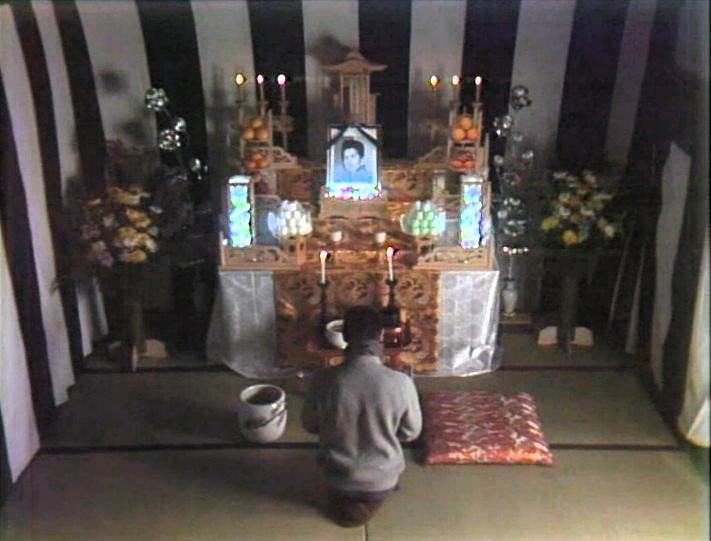 物語の終盤、おふくろ様の遺影の前で泣く三郎…。これまで涙一つ見せなかった三郎ですが、1人になり悲しみを抑えきれず号泣する三郎…。
