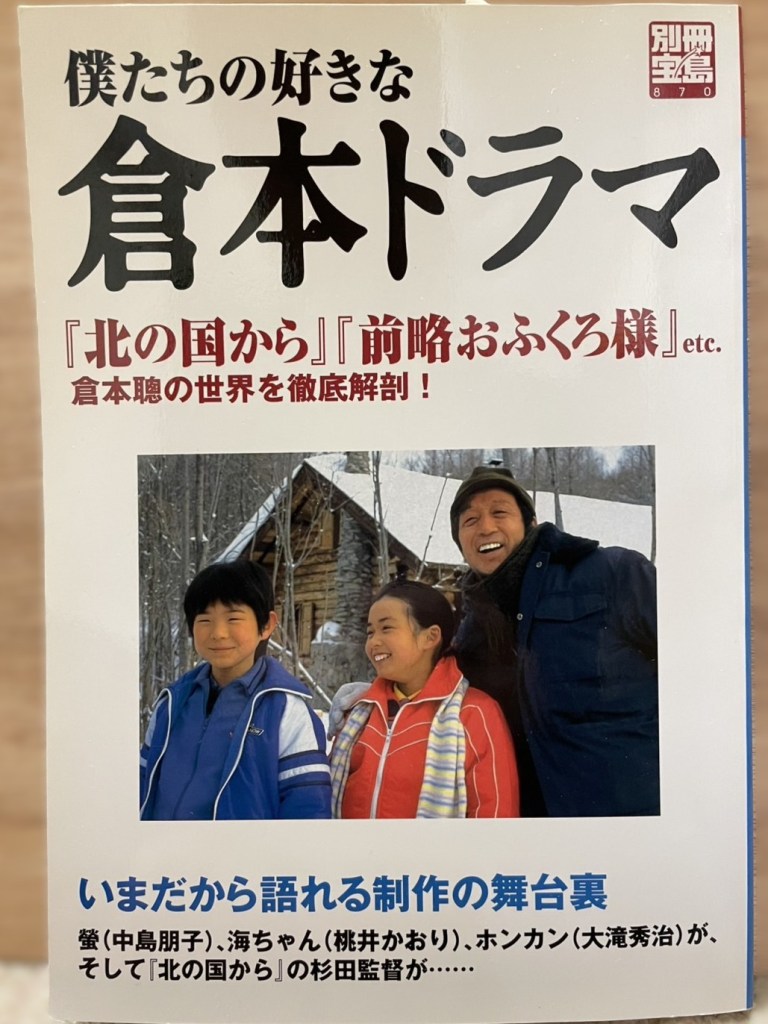 「僕たちの好きな倉本ドラマ(別冊宝島)」宝島社2003年10月27日発行を紹介します。いわゆるムック本と言われるもので、倉本先生の書籍ではありません。中嶋朋子さん・杉田成道さん・桃井かおりさん・大滝秀治さんのインタビュー記事、『北の国から』『前略おふくろ様』『うちのホンカン』の内容紹介、倉本ドラマが好きな編集者の記事という構成になっています。
