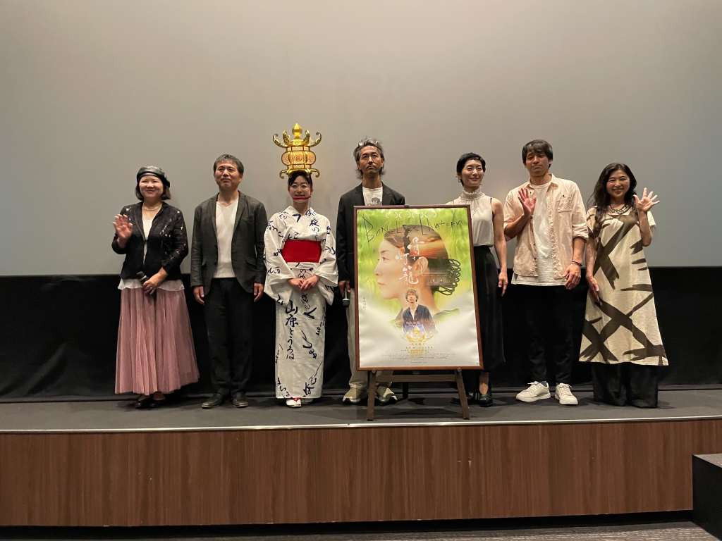 上映後には木庭監督をはじめ出演者の方の舞台挨拶がありました。左から木庭撫子監督、杉本凌士さん、知江崎ハルカさん、水津聡さん、まひろ玲希さん、高山陽平さん、たむらもとこさんです。