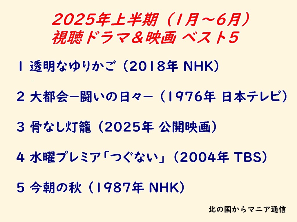2025年上半期(1月〜6月)に観たドラマや映画のマイベスト5を紹介します。上半期に新たに放送された作品というわけではなく、あくまでも私個人が【上半期に初めて観た】作品の中でグッときた感動したものを5つ選びました。