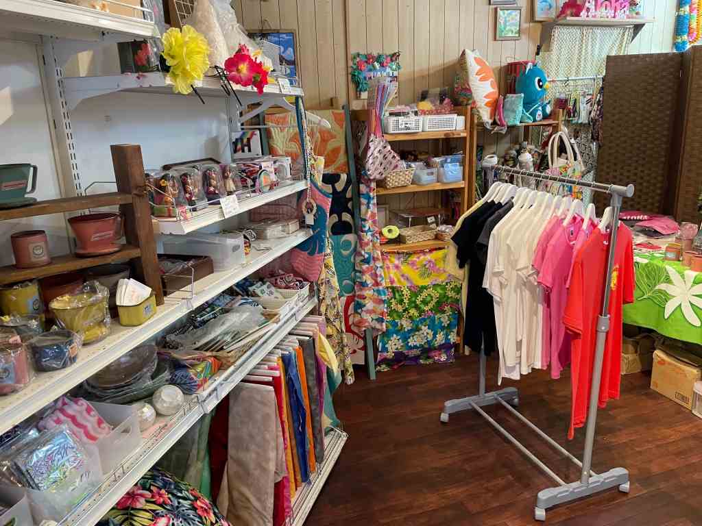 店内にはハワイアングッズがたくさん並んでいます。お店は月2回ランダム営業とのことですので、行かれる方はプアリリのインスタ、または古本新乃輔さんのインスタなどで営業日を確認されてからの方が良いかと思います。