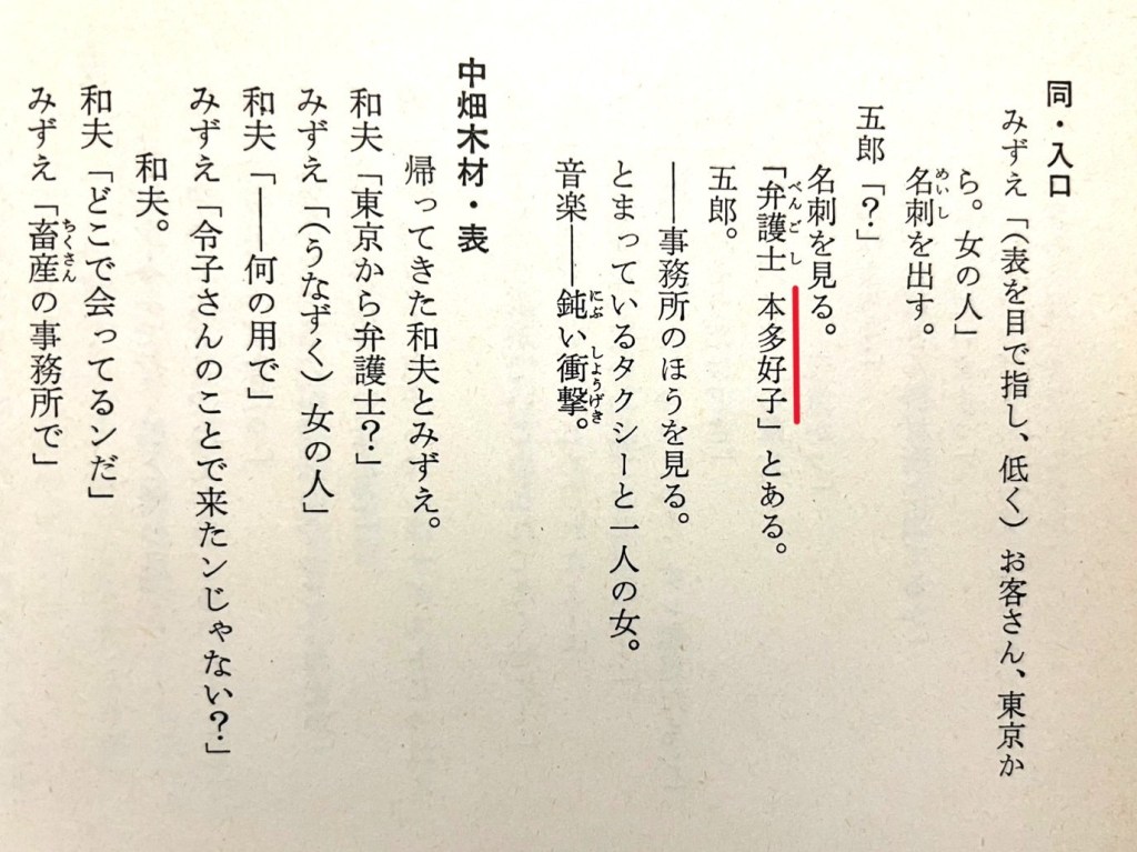 シナリオ本では名刺『弁護士 本多好子』と書かれています!