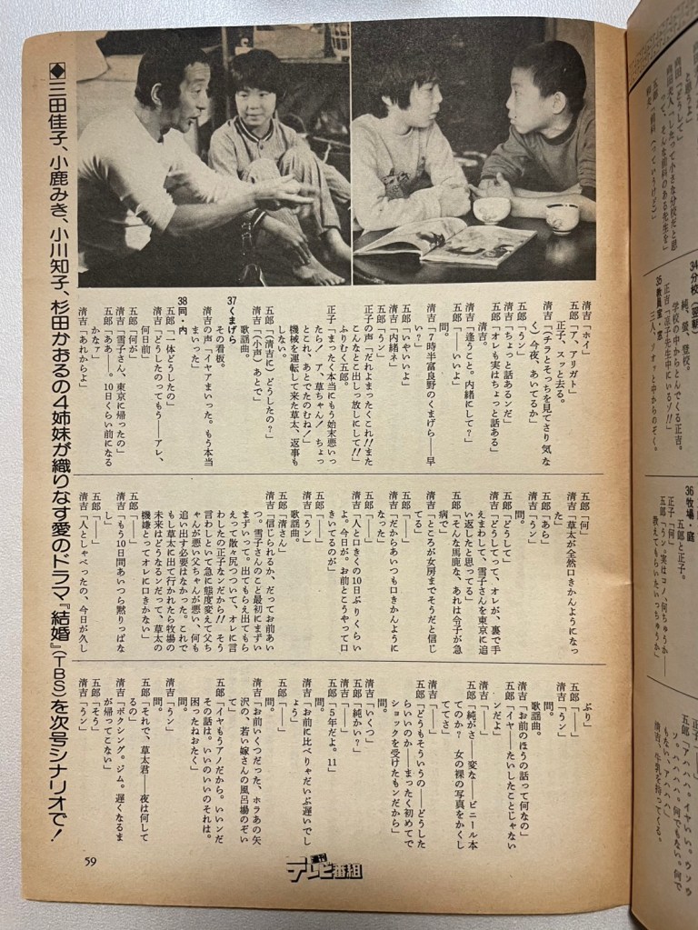 なんと!連続ドラマ第15回のシナリオが1話丸ごと掲載されています。ドラマシーンの写真付きです。この頃は贅沢な紙面の使い方をしていたんですね。