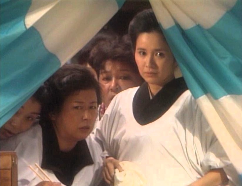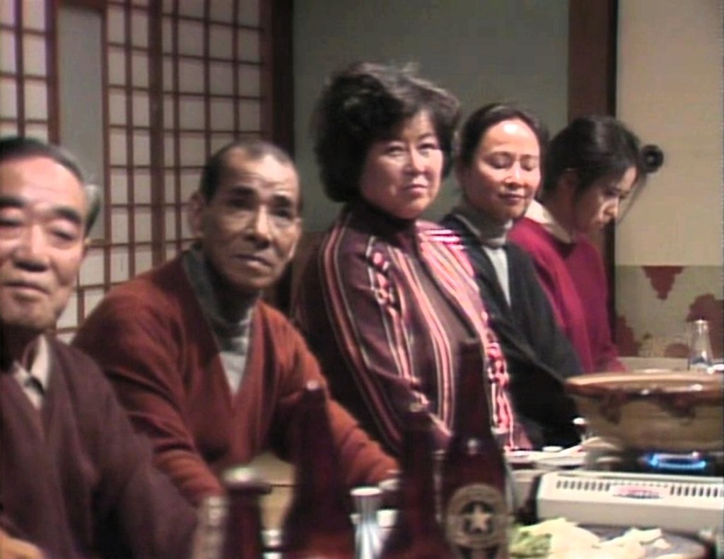 ◇ライスカレー(1986年) アキラ(陣内孝則)の母キヨ(村瀬幸子さん)の葬儀シーンで料理の準備をする主婦の1人を演じています。男たちの喧嘩が始まり女性たちはじっと見ています。隣にいるのはケン(時任三郎さん)の姉の朋子(風吹ジュンさん)です。