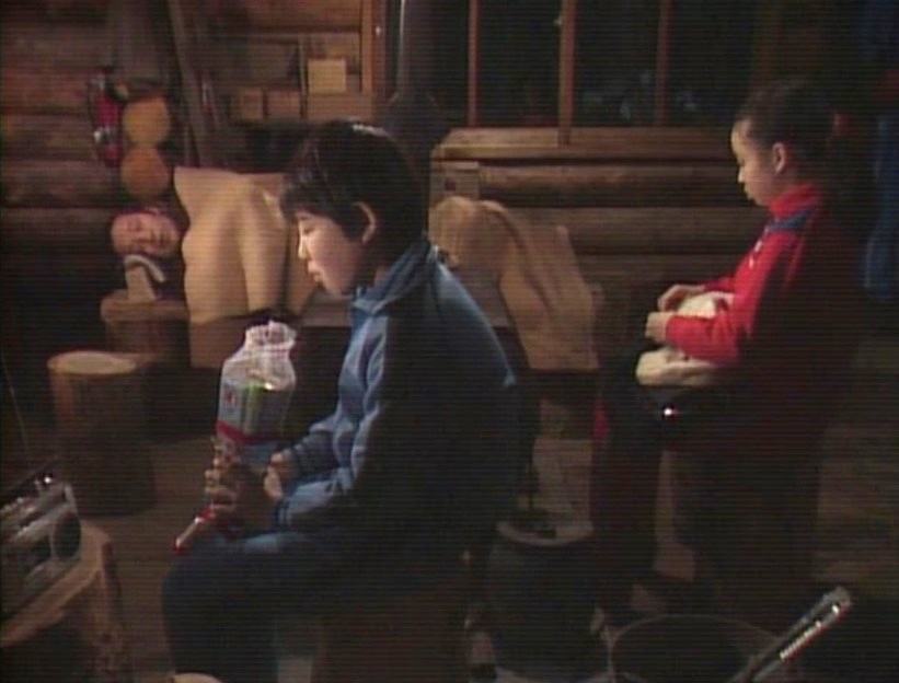 🎄’83冬…大晦日、ラジオでNHK紅白歌合戦を聴きながら、五郎からのクリスマスプレゼントのお菓子を食べている純と螢。