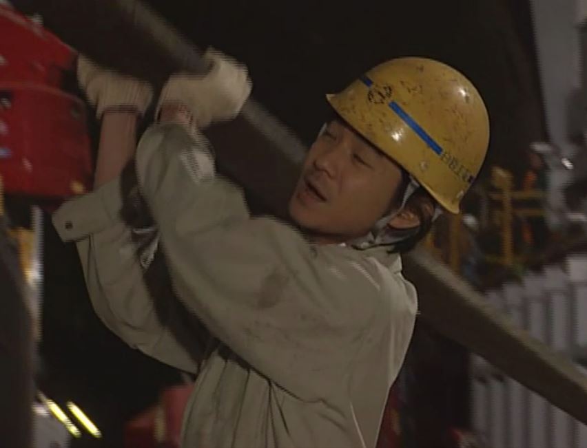 ◇黄色ヘルメットに青ライン(地下作業現場)