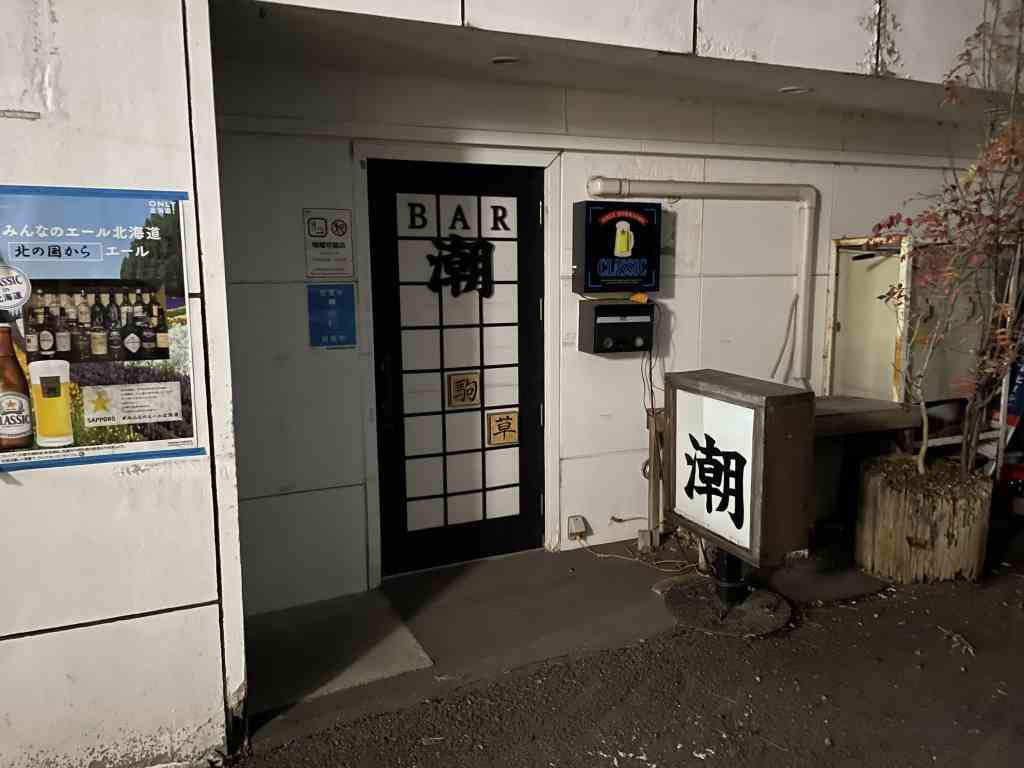 訪れた日は残念ながらお休みでした。BAR潮の入口に「駒草」の文字がありました。