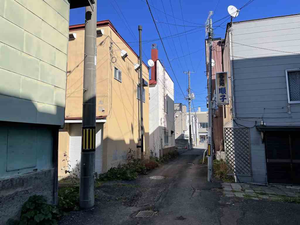 こごみのアパートと呑み屋街 連続ドラマ~。連続第19回、高中正義のPrologueが流れる中、こごみのアパートから朝帰りする五郎が歩いた呑み屋街。連続第21回、新吉と中川が五郎とこごみがアパートに入って行くところを目撃した場所。
