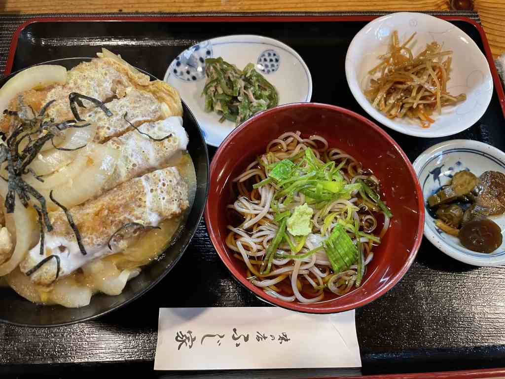 1階のカウンター席でカツ丼と蕎麦のセットを美味しくいただきました。