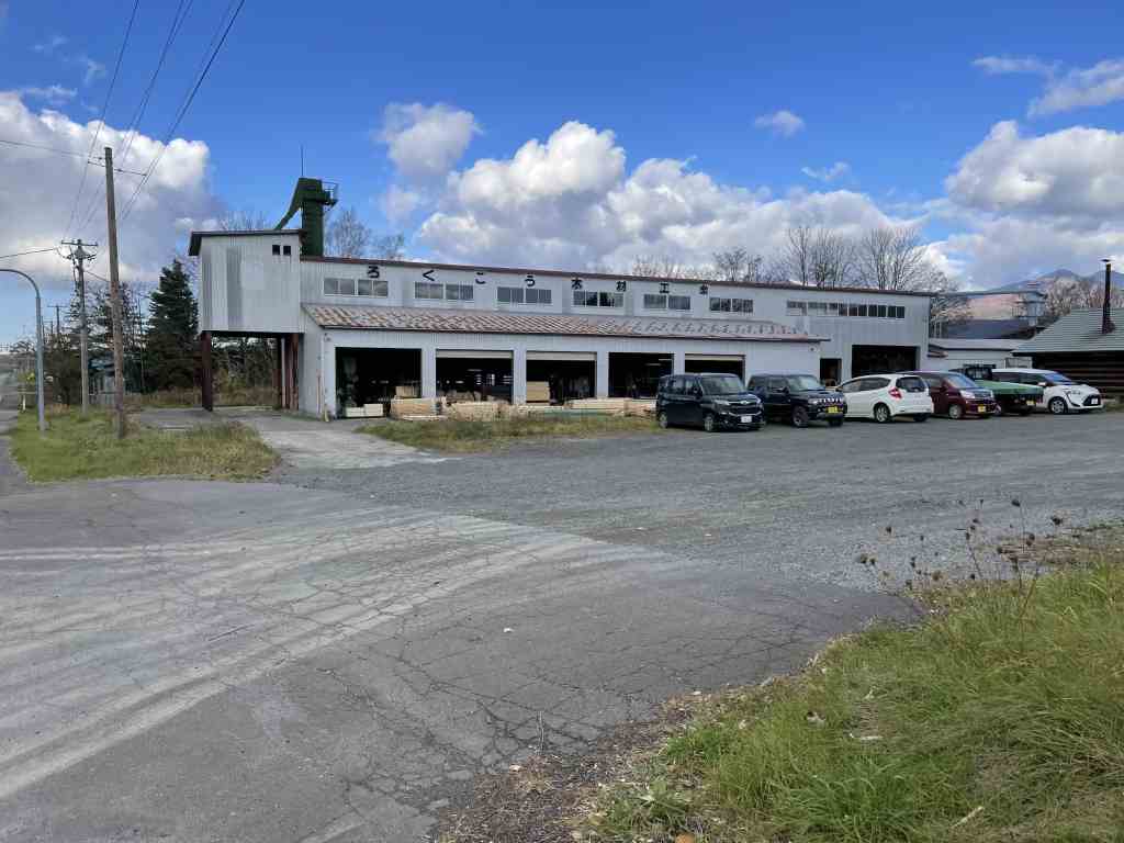 中畑木材の作業場 連続ドラマ~。屋外に多くの丸太が置いてあった。雪子が製材工場で働くシーンもあった。