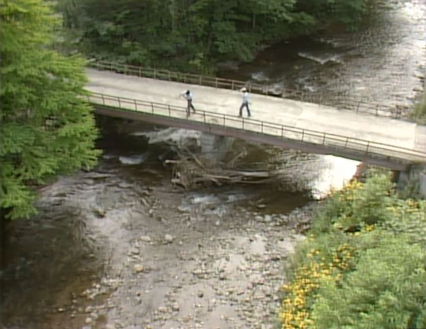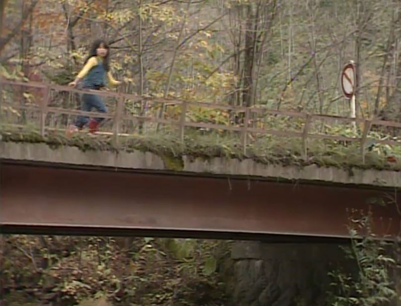 ②連続ドラマ第15回、純と螢と正吉が川で遊んでいると、森さんとこの新婚の嫁さんがクワを洗っているのを正吉が見つけた。純はその女性の白い足を見てドキドキしていた。そこに車で来た五郎が富良野に行くぞと声をかけた橋。