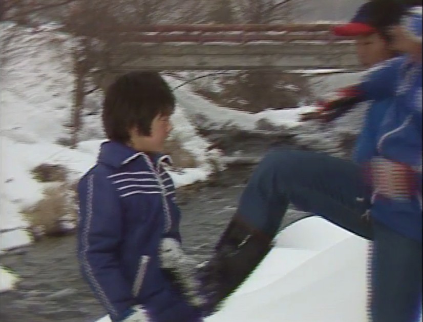 純が川に蹴落とされた場所 連続ドラマ第11回。純が歩いていると正吉に呼び止められる。中学1年の隆が現れ、純は2人に「正吉のじいちゃんの悪口を言っている」と責められる。隆「しまンねぇ野郎だな」と、純は川に蹴落とされる。赤い欄干の橋が見える。