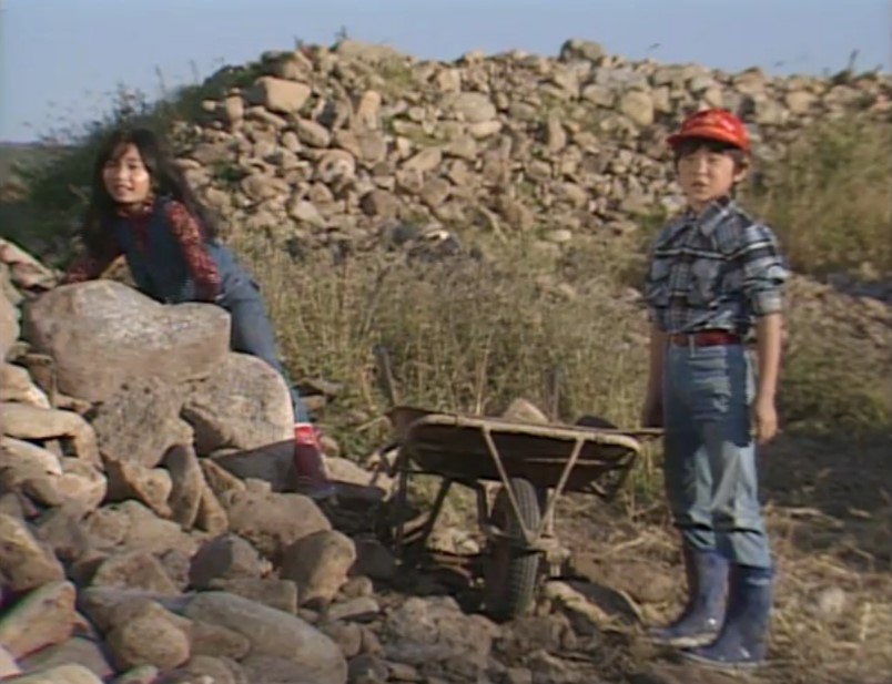 ②’95秘密、れいちゃんと純は八幡丘の道を歩き、つぶれた納屋を見つめていた。