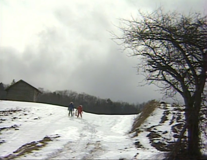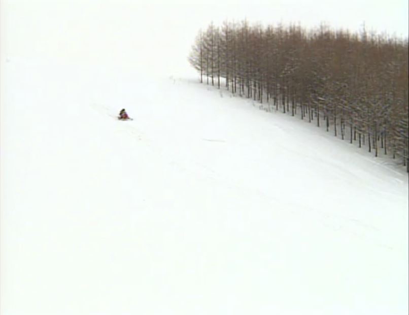 3人でそり滑りをした丘 連続ドラマ。子どもたちを見に来た令子が帰った後、五郎・純・螢がそり滑りをした丘。