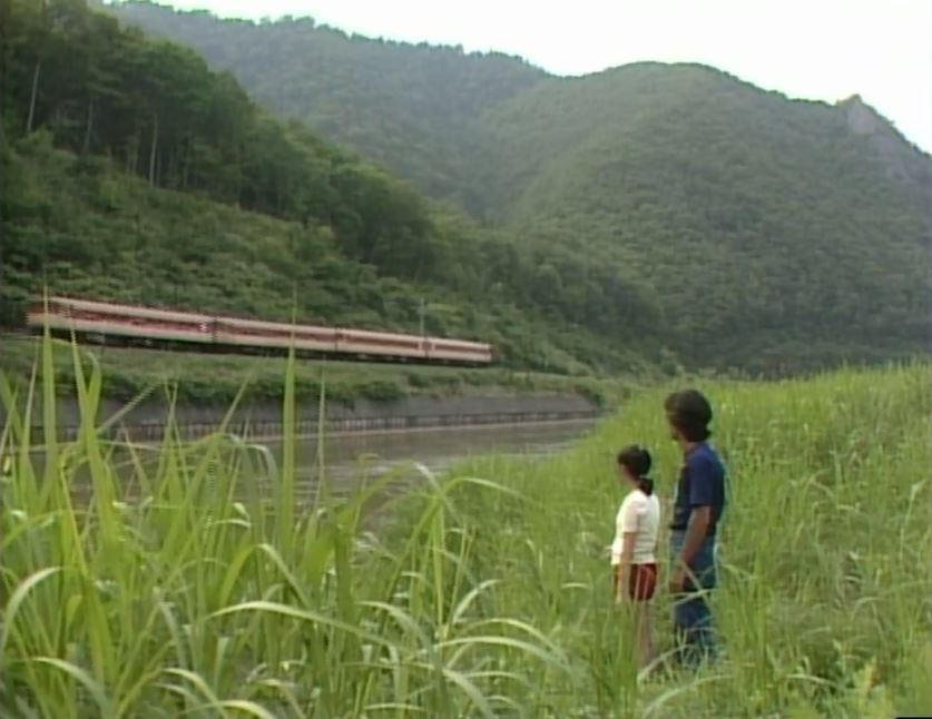 ①連続ドラマ、列車から顔を出す令子を螢が泣きながら追いかけた川岸。