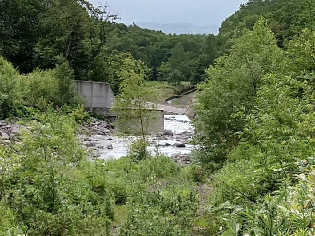 現在はゴルフ場になっている。「空知川ラベンダーの森ゴルフコース・南コースHole7Par4」わき