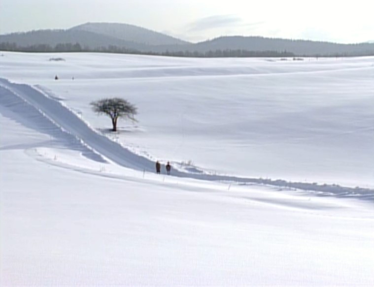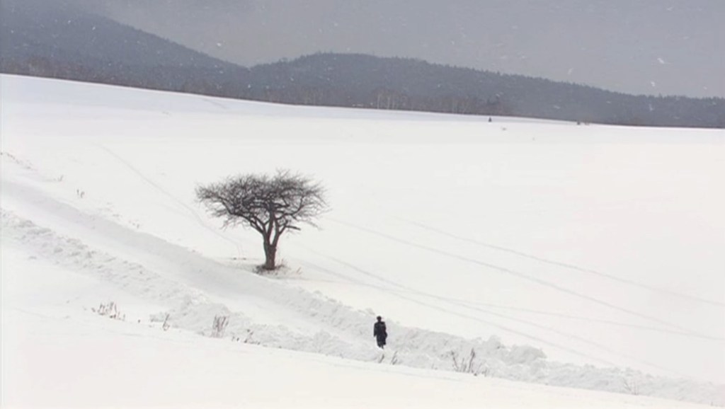 ②2002遺言、ラストシーンで五郎は雪の中、開拓の木のわきを歩く。