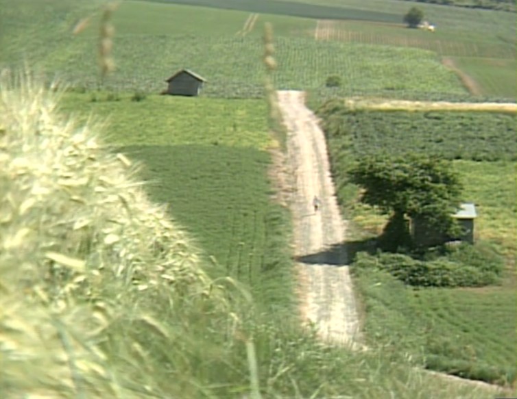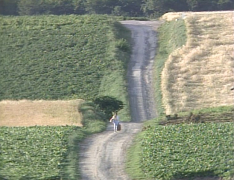 ①’92巣立ち、純と螢が歩く先に麓郷展望台から見える開拓の木がある。