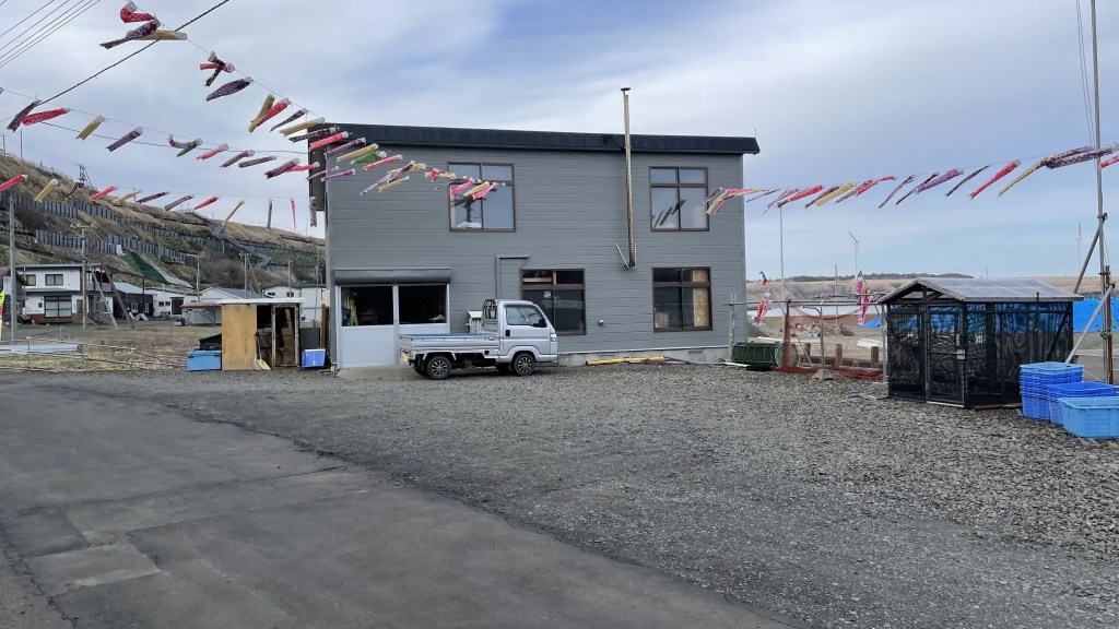 こちらも建物が建て替えられていました。作業小屋として使われているようです。たくさんの鯉のぼりがなびいていました。