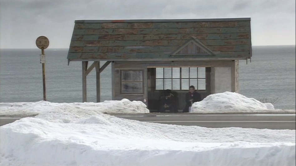 螢と純が会話したバス停 ‘95秘密。純「元気なのか」螢「うン元気!このとおり。何しろドクター付きの生活してるから(ちょっと笑う)」